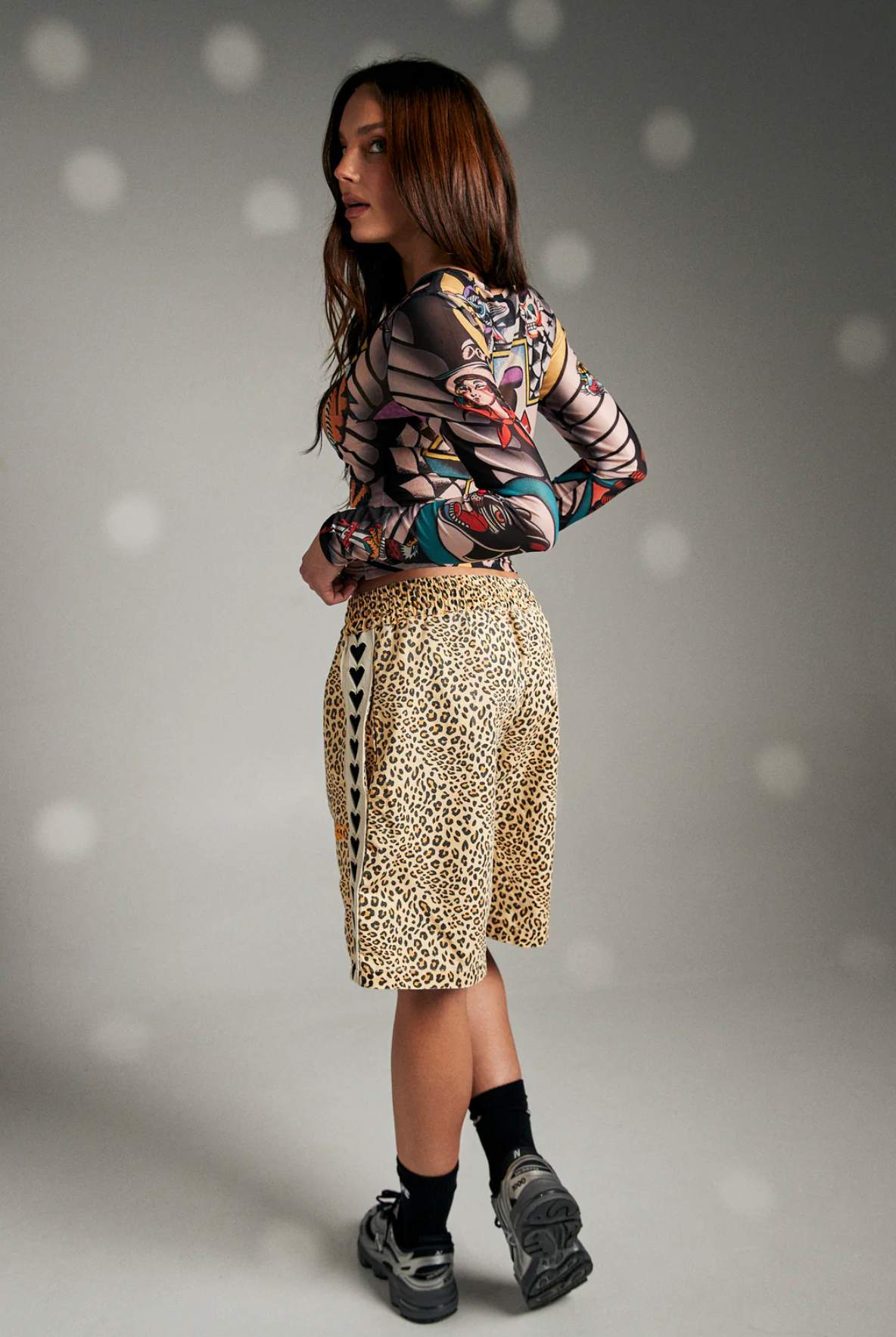 SABBI's Heartbreaker Jorts bring bold flair and cozy comfort together, boasting an all-over leopard print and a cheeky heart tape stripe. With a laid-back fit, stretchy waistband, and adjustable drawstring, they’re perfect for whatever your day holds. Show off your fearless vibe while staying comfy, whether you’re out turning heads or kicking back. Celebrate your lively spirit with jorts that move as freely as you do.