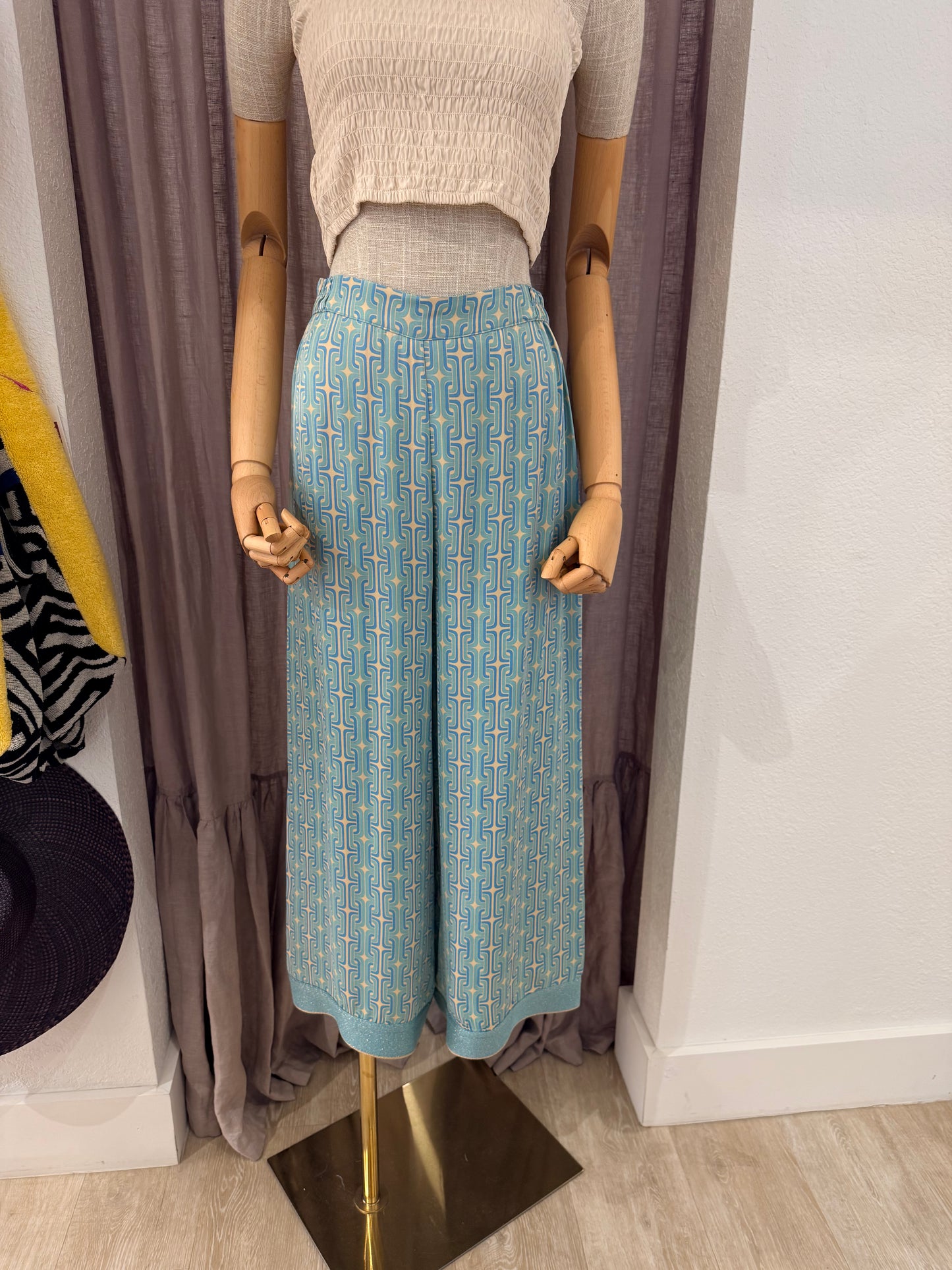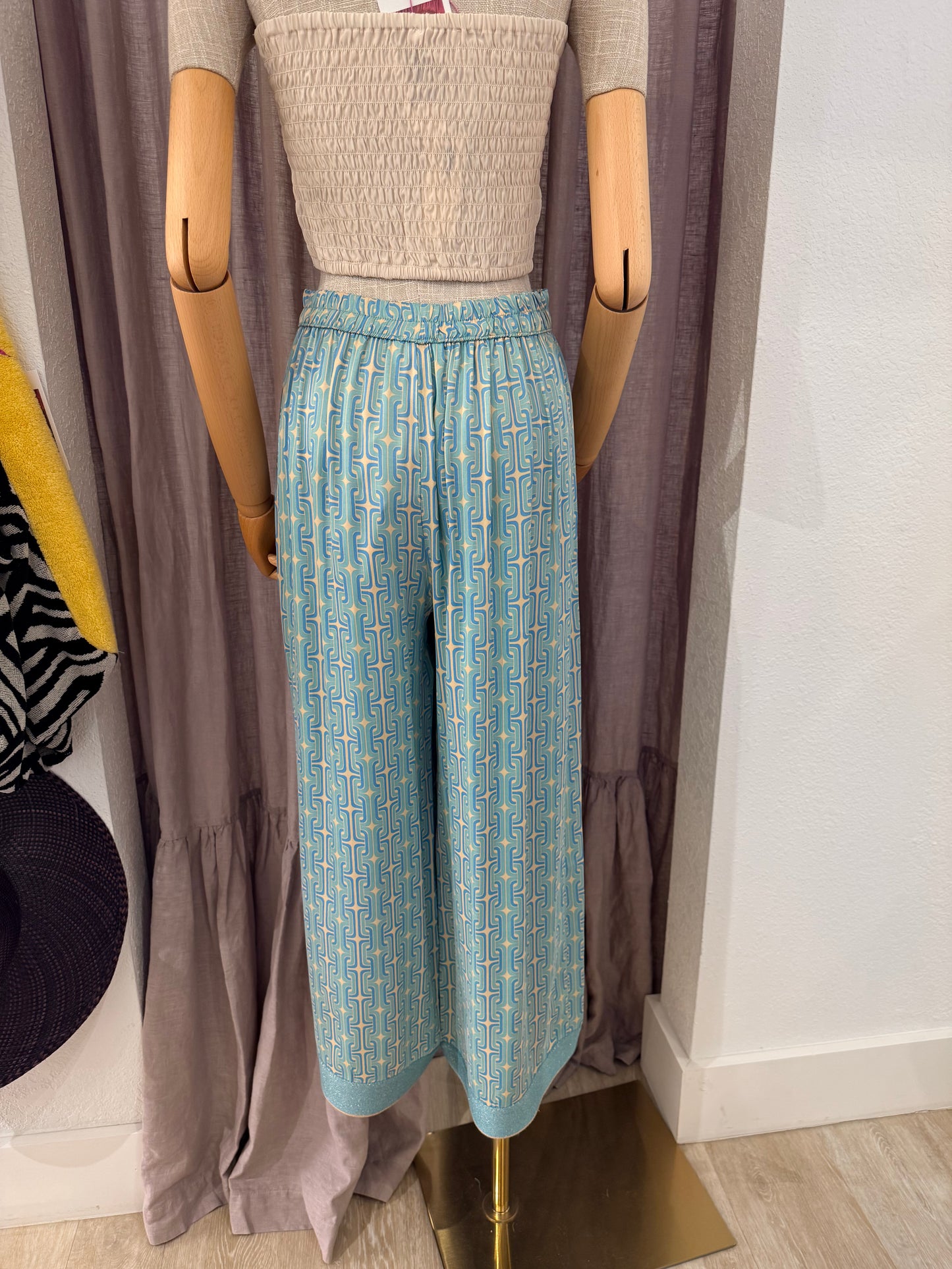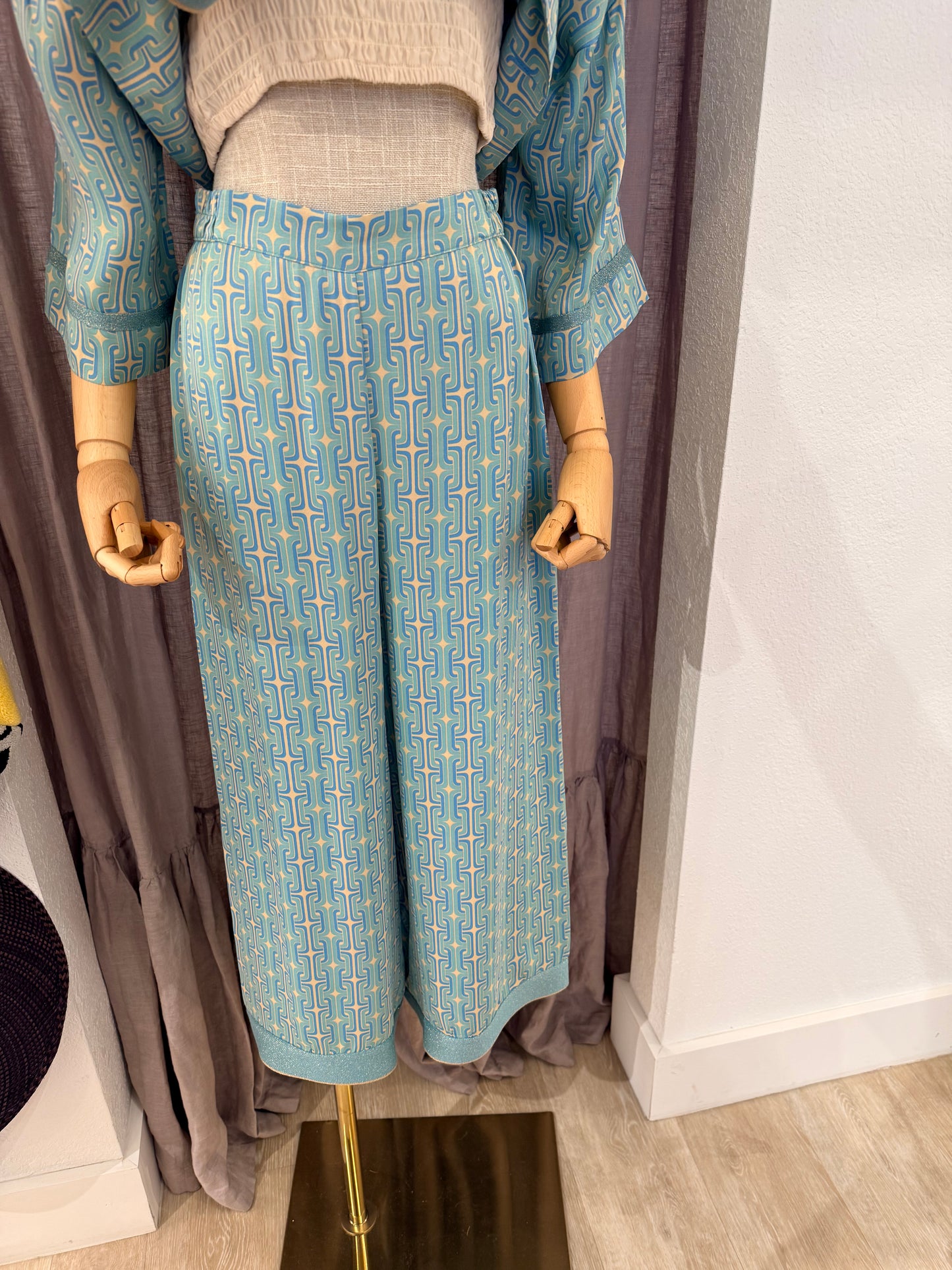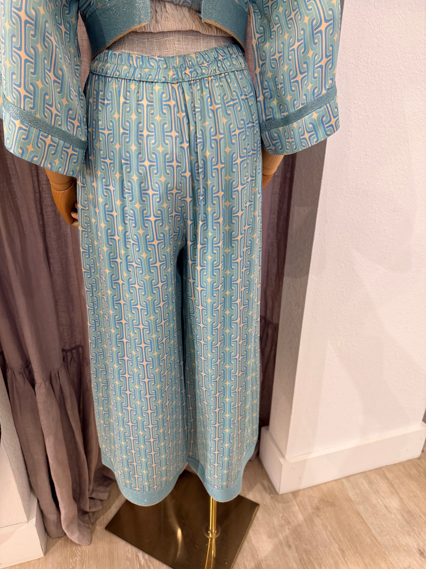 Draped in sumptuous satin with refined knit detailing, the Persephone Crop Pant captures an air of understated sophistication. A subtle geometric pattern nods to classical mythology while the fluid fabric drapes with effortless grace. Designed for those who appreciate the intersection of comfort and elegance.