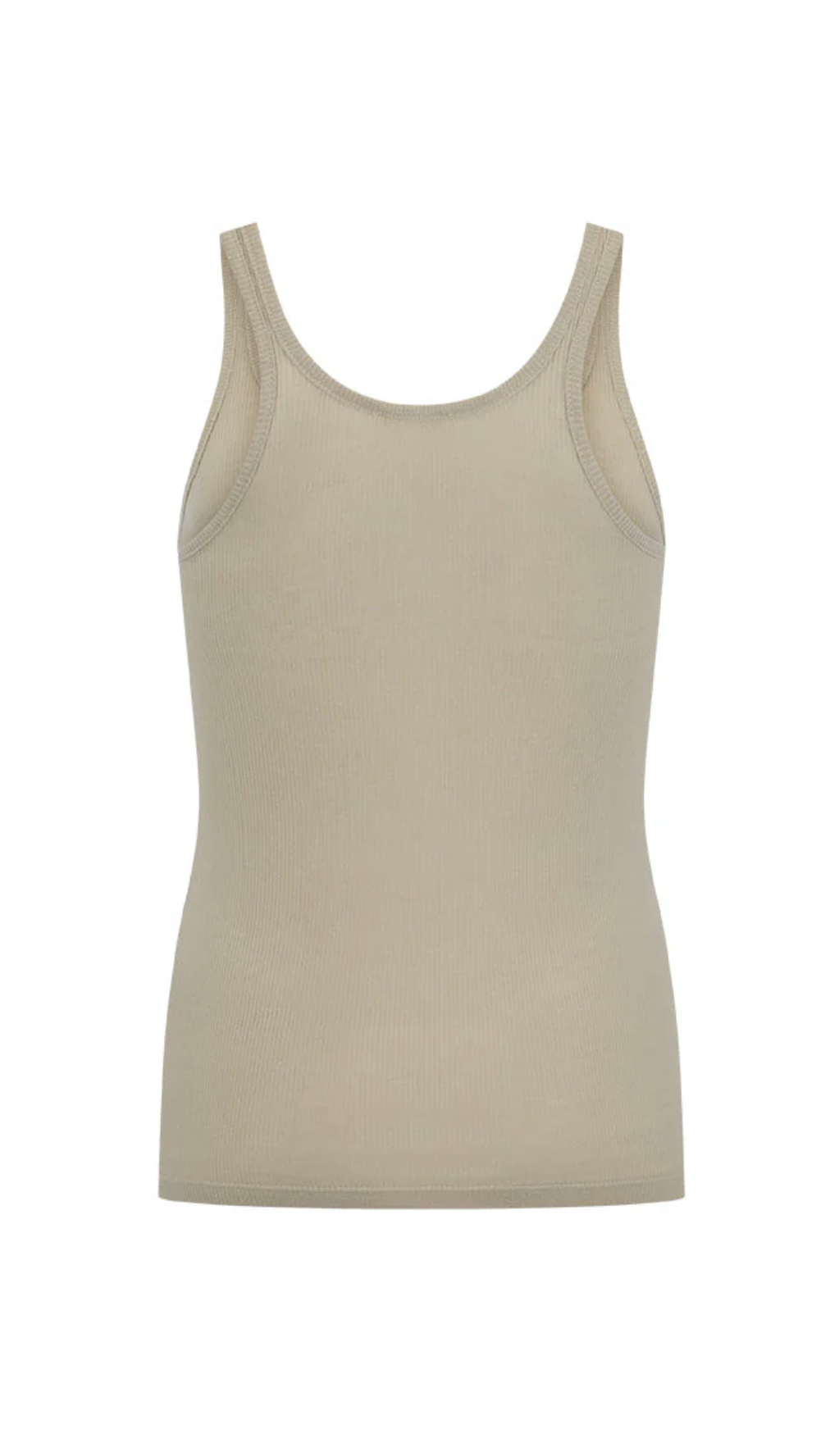 SPELL's Isabella 2.0 Singlet reimagines a wardrobe essential with premium materials and thoughtful construction. Built from 80% TENCEL™ Lyocell and 20% Hemp, this Stone-colored piece combines breathability with subtle structure. The upgraded rib fabric feels substantial against the skin, while reinforced binding at the neck and armholes ensures lasting wear. Unlined for comfort in layering or worn solo, it transitions seamlessly across seasons and styling moods.