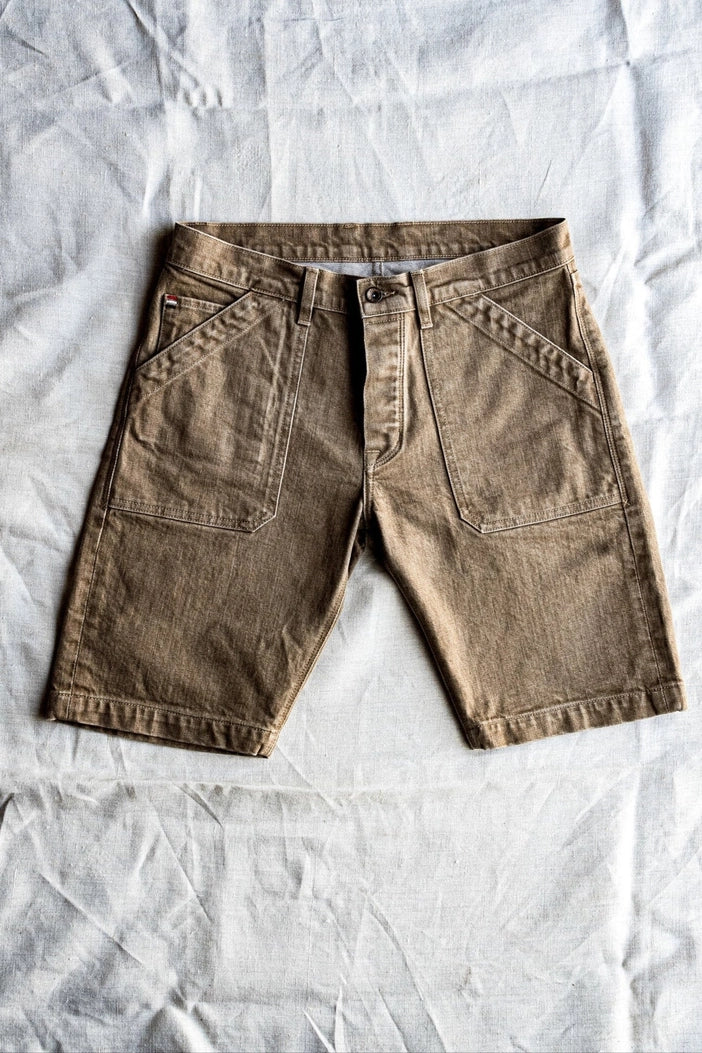 WIESMADE - Crafted through meticulous development, our Scout Military Short features a proprietary 14oz broken twill denim blend with minimal 1% stretch. The premium ring-spun cotton construction delivers exceptional durability while maintaining a supple hand-feel—a refined alternative to conventional stretch denims. This substantial fabric naturally molds to your silhouette, offering vintage-inspired drape with subtle comfort flex. The garment arrives with an intentional snug fit that softens and personalizes with wear. Elevated construction details include 1/8-inch double-needle stitching, custom brass hardware, tucked belt loops, hand-sanded finishing, and chain-stitched waistband and hem for enduring quality.