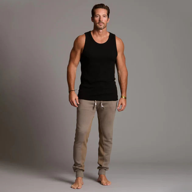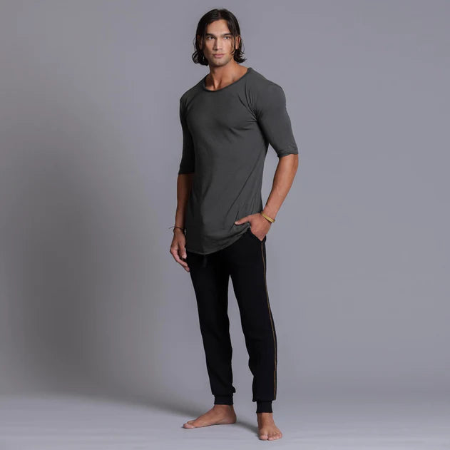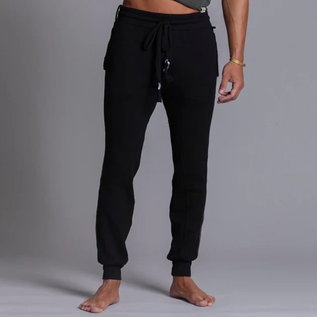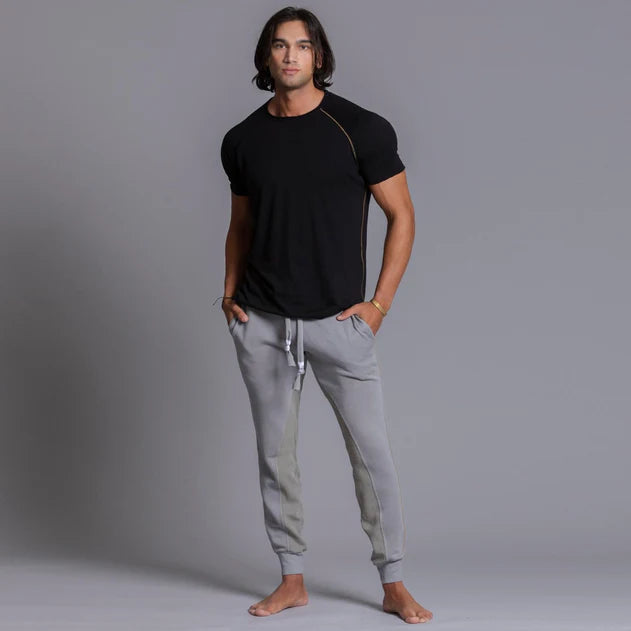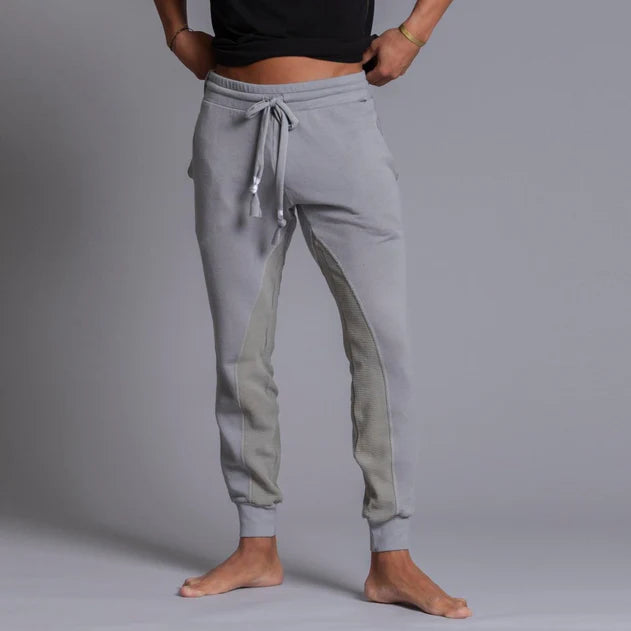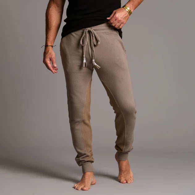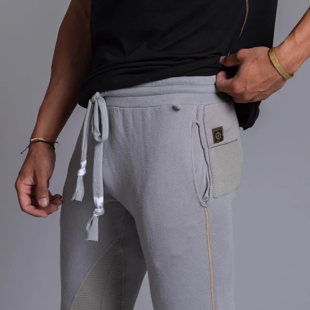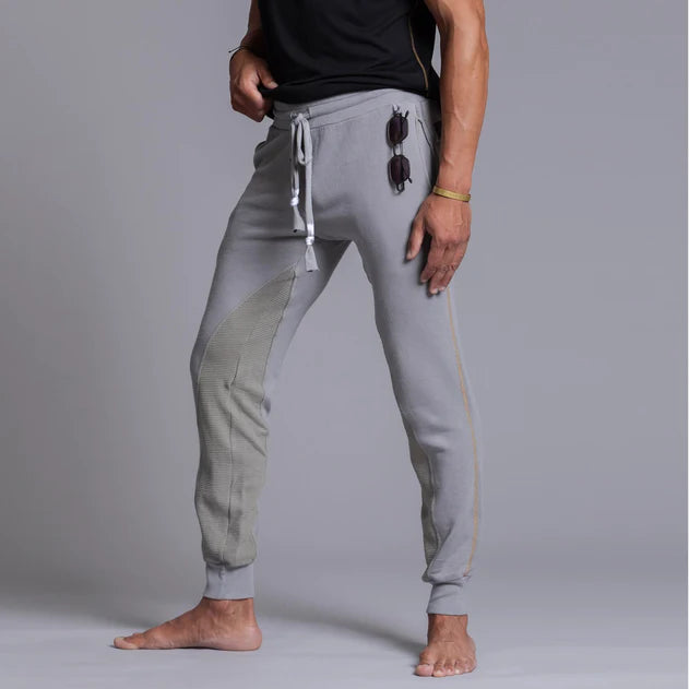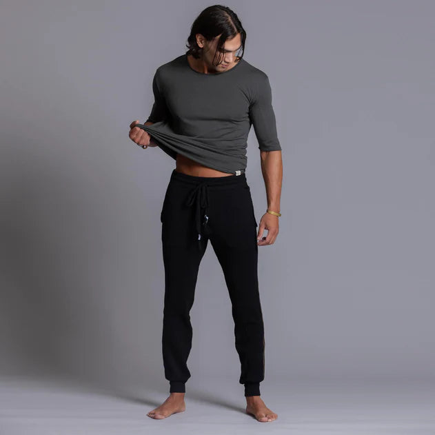 ONE GOLDEN THREAD - Meet the Jogga—Air, our innovative sized-fit joggers designed for those who refuse to compromise on comfort or style. Constructed from TreeSilk™, a sustainable fabric woven from regenerative European beech trees, these joggers feature a clever dual-sided design: textured French Terry on one side, silky smooth on the other, allowing you to choose your tactile experience daily. The relaxed silhouette, anchored by an oversized elastic waistband and cuffed ankles, moves with you seamlessly—from morning lounging to evening adventures. Thoughtful details elevate the everyday: functional sunglass hooks, a side phone holster, and cascading textured panels that balance minimalist aesthetics with purposeful design. Inspired by Japanese wabi-sabi principles, the Jogga celebrates simplicity and imperfection. Breathable, versatile, and endlessly adaptable, these joggers transition effortlessly across any occasion.